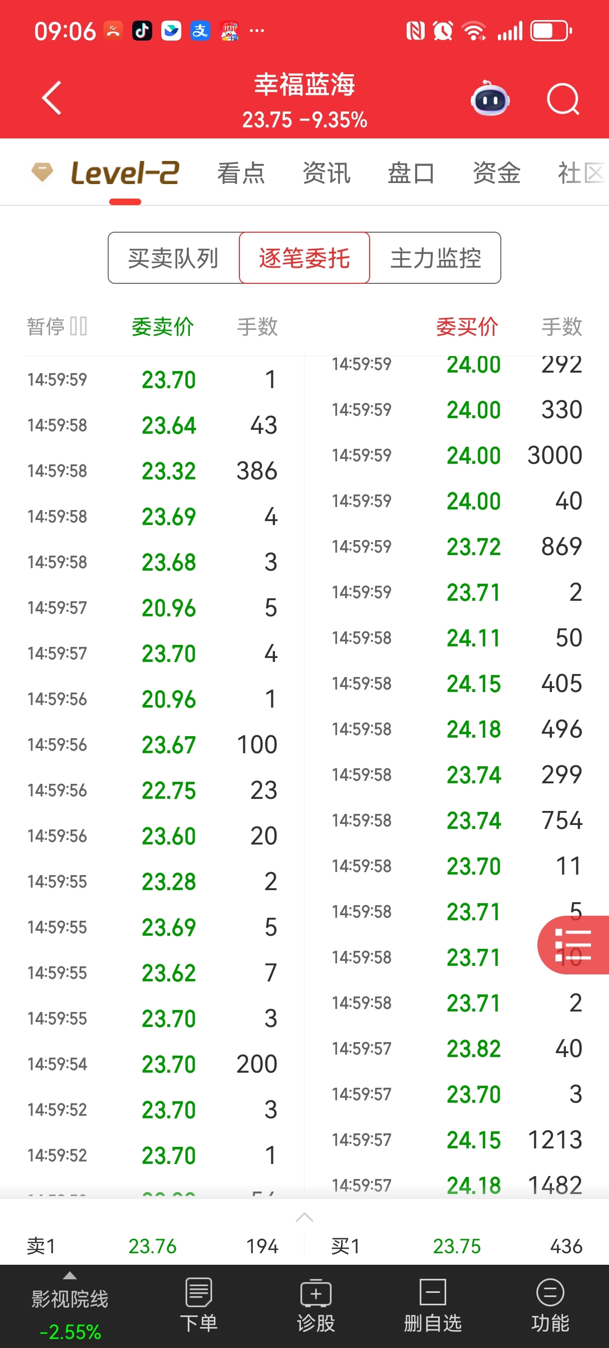 $幸福蓝海(SZ300528)$ 看竞价盘口,有人在最后0.001秒把所有小单子全吃了,拿了1000多万,是吃货?