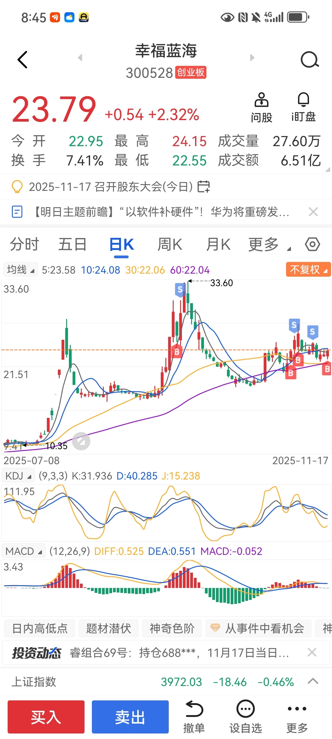 $幸福蓝海(SZ300528)$ 我又进来了,朋友们