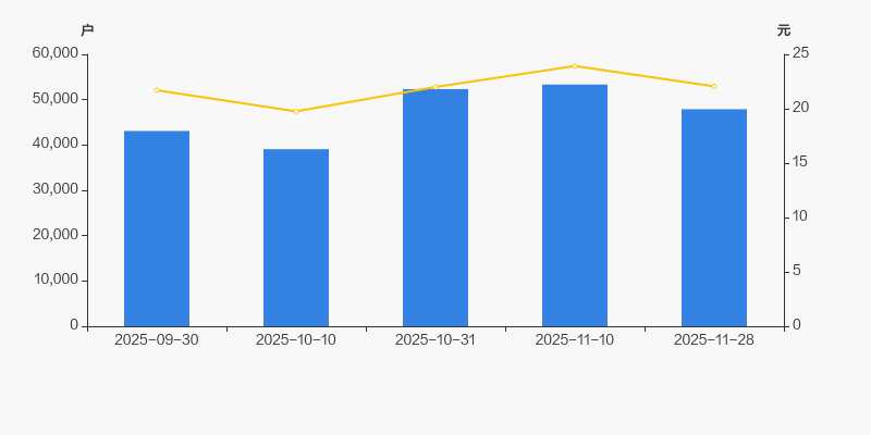 2025年9月30日至今,公司股东户数显著增长,区间涨幅为11.15%。2025年9月30日至2025年11月28日区间股价上涨1.66%。
