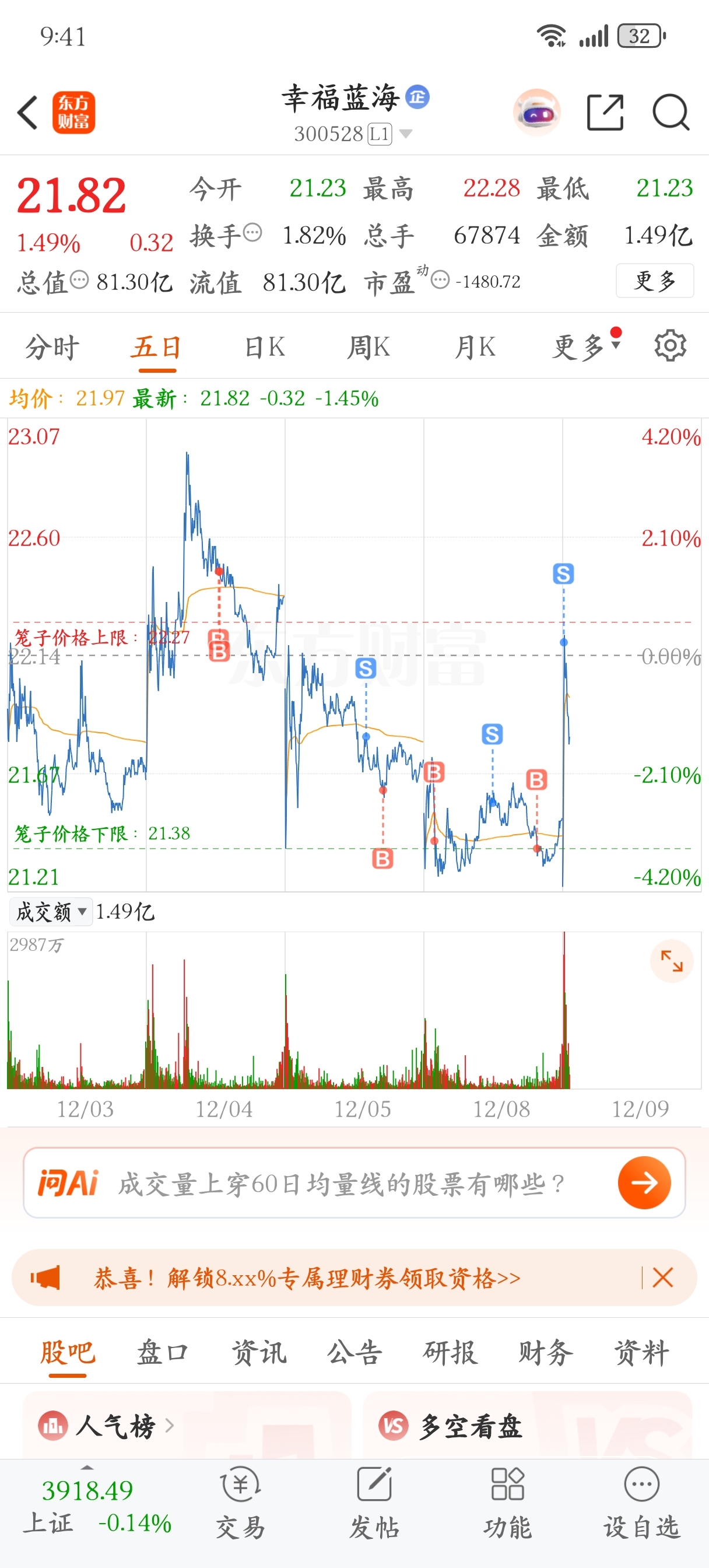 $幸福蓝海(SZ300528)$ 只想回本,小赚一点,算是弥补我这几天错失行情的补贴,清仓跑了,你后边涨上天也跟我没关系,因为你,我看好的票11个点没吃到,这还是今天回了5个点的原因,自己玩吧