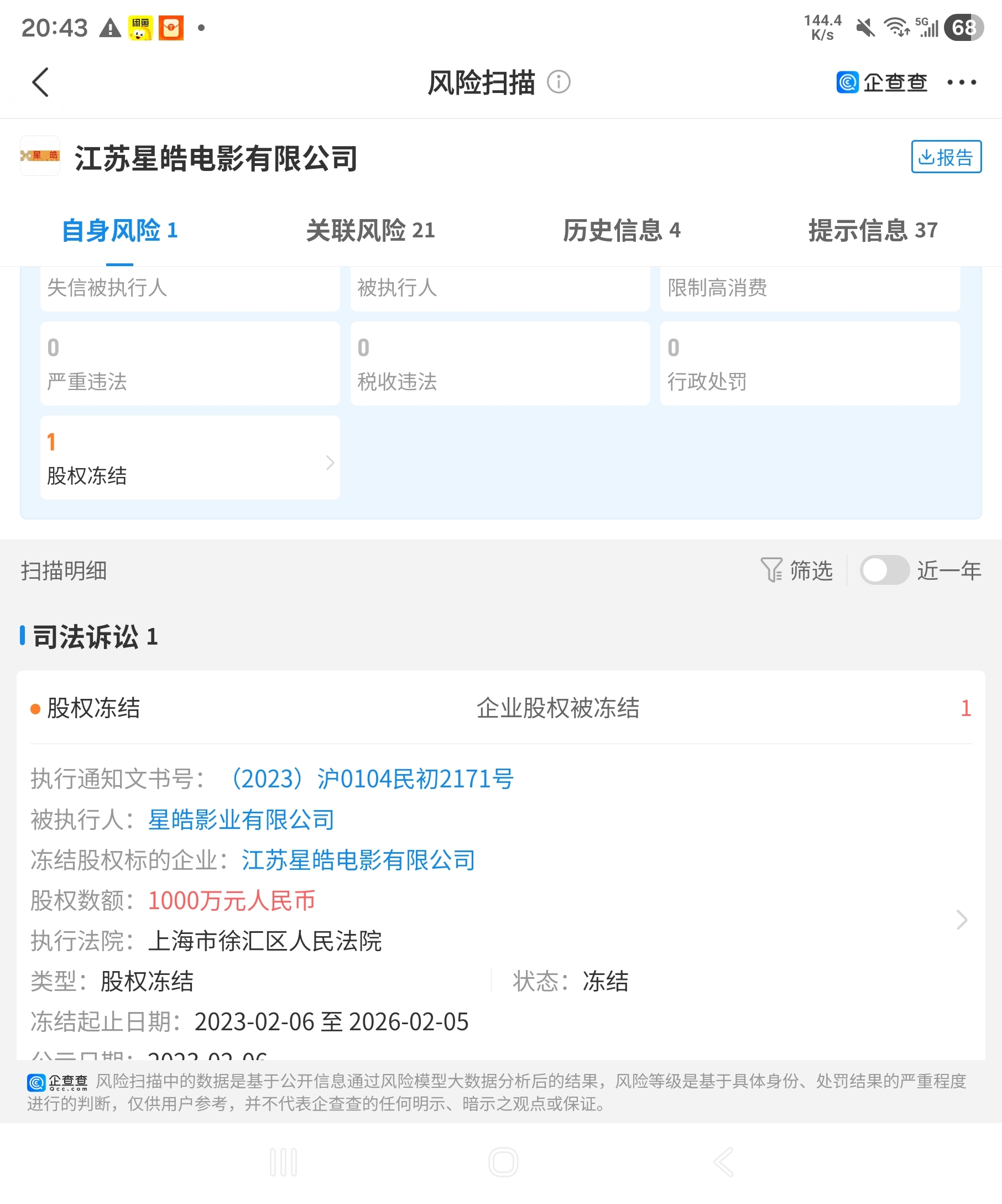 主出版方全部股权被冻结,涉及金额超9000万!还能上映么?