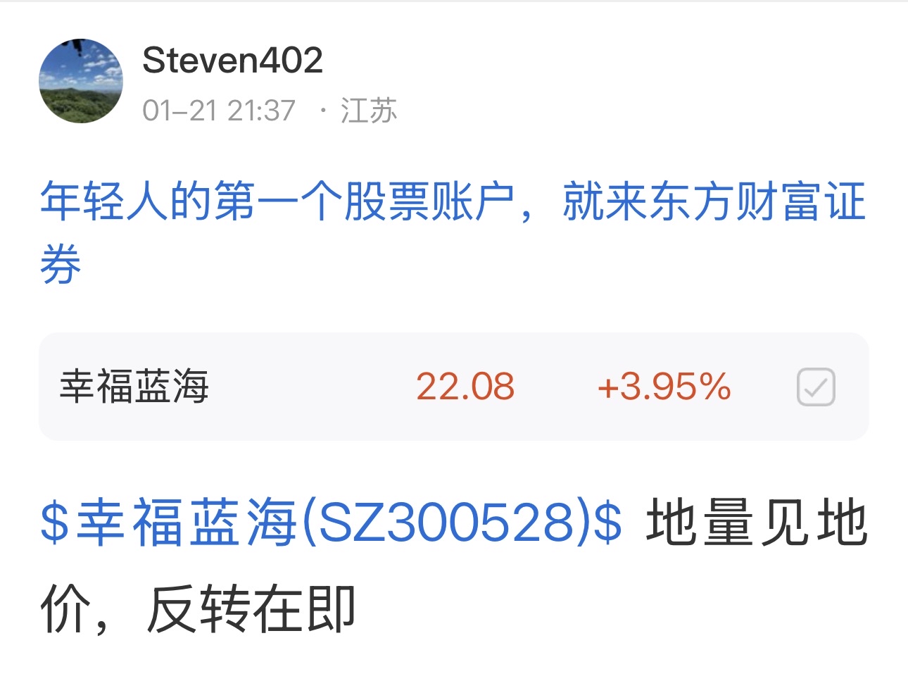 $幸福蓝海(SZ300528)$ 昨天早上精准预测底部,小韭菜整天哇哇大叫,一团浆糊!