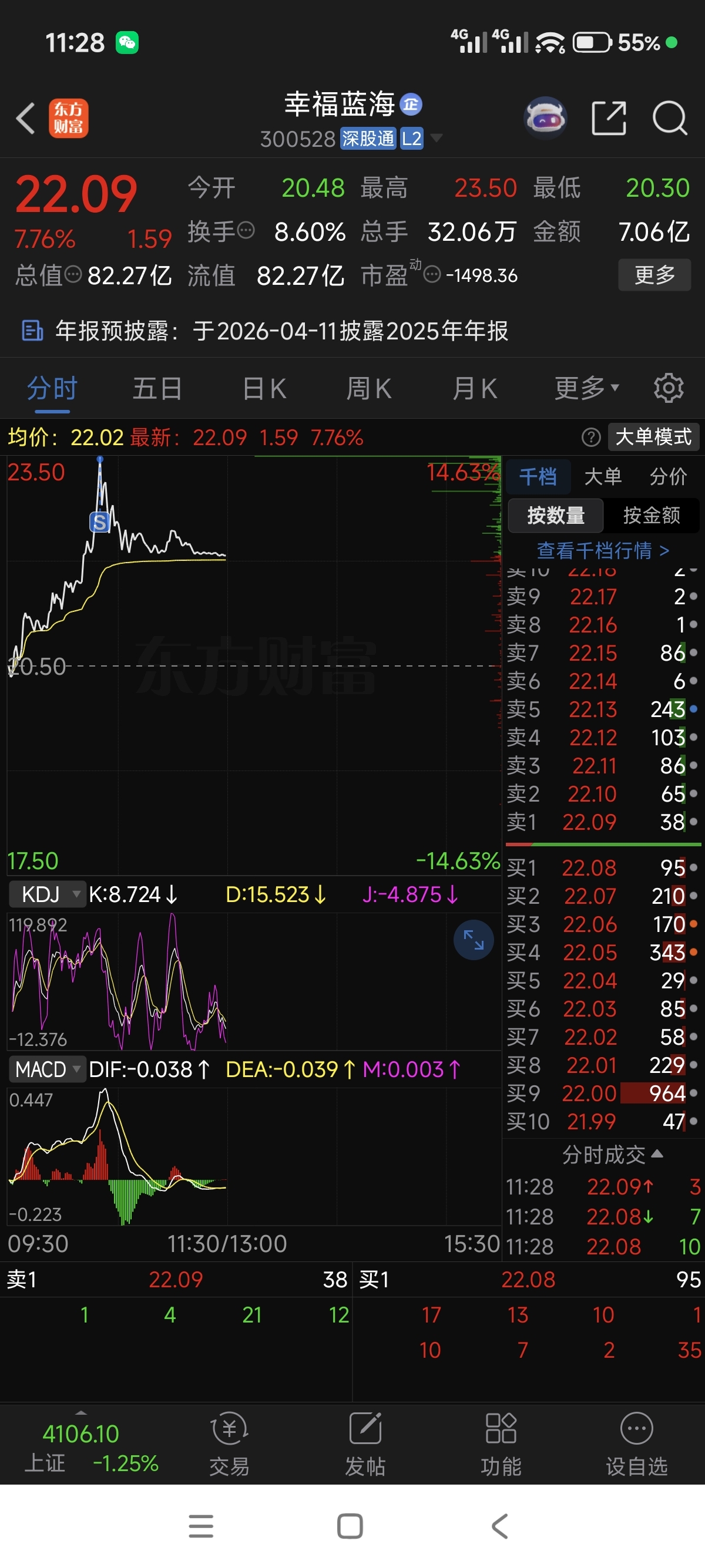 $幸福蓝海(SZ300528)$ 昨天水下进的,今天高位出了,等下来再进。
