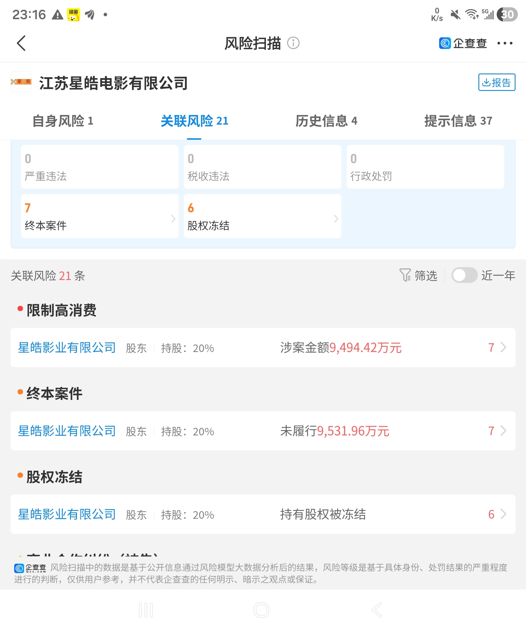 $幸福蓝海(SZ300528)$ 董秘你好,主要出品方星浩电影股权全部冻结并限制高消费,是不是春节档无法定档的原因?
