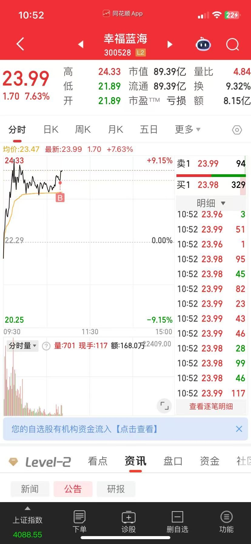 23.75果断介入$幸福蓝海(SZ300528)$