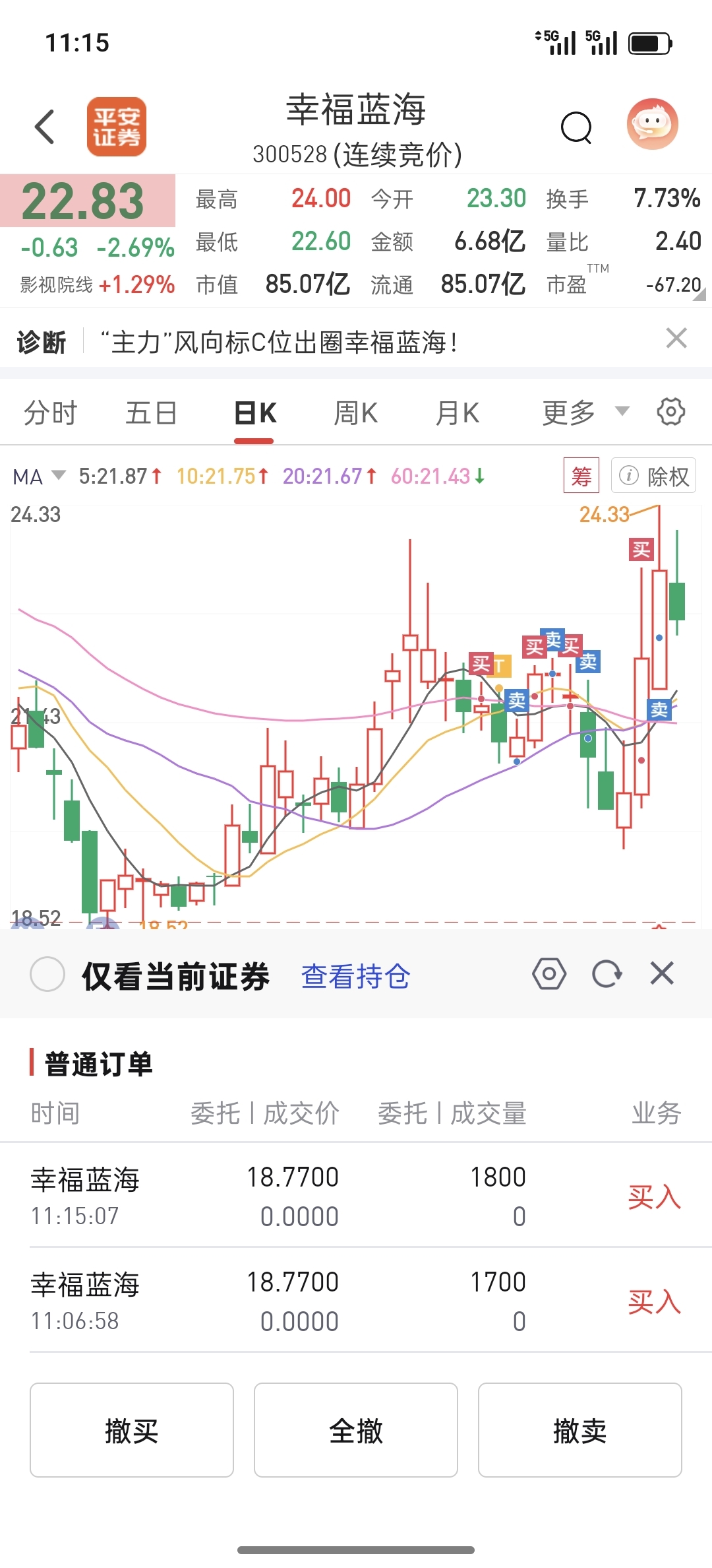 $幸福蓝海(SZ300528)$ 你敢跌我就敢补