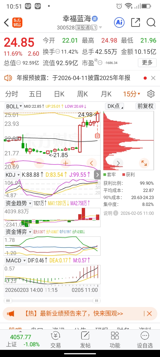 哈哈虽然没有站上15分钟BOLL上轨但5分钟BOLL上轨足够涨停板价格就买进试仓