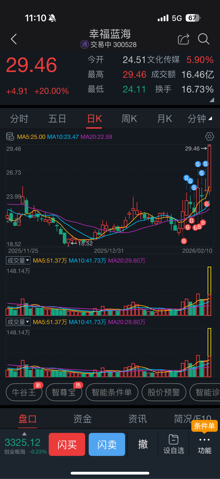 $幸福蓝海(SZ300528)$ 你麻辣个巴子