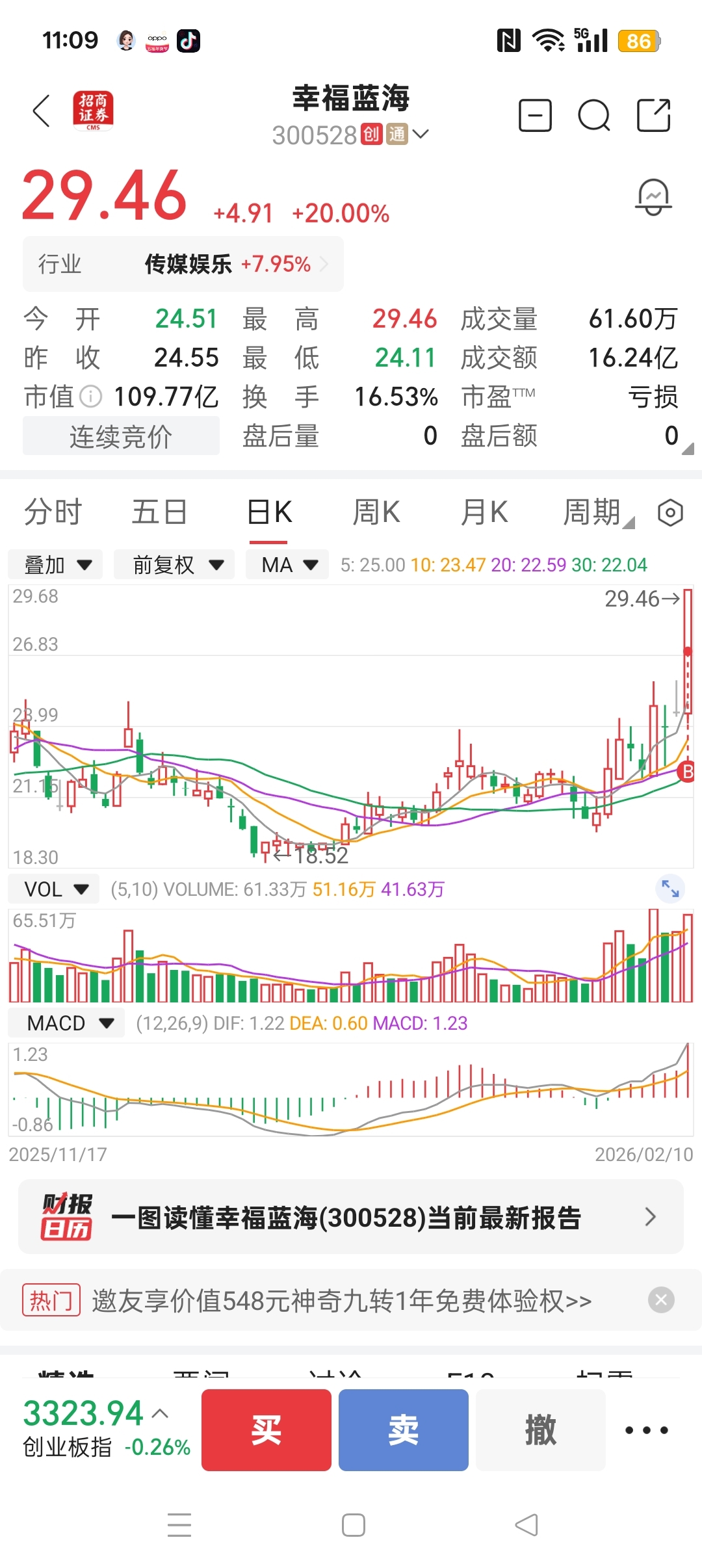 $幸福蓝海(SZ300528)$ 来来了