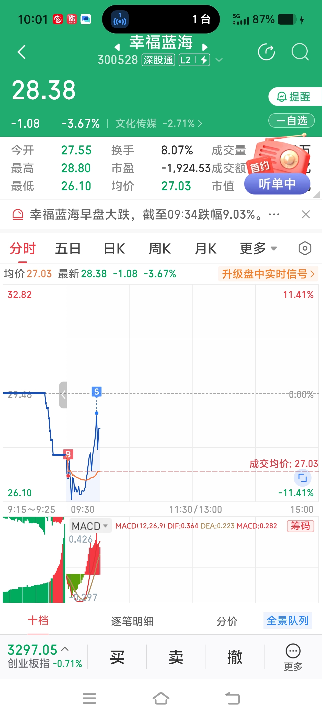 $幸福蓝海(SZ300528)$ 今天收盘-7都赚了
