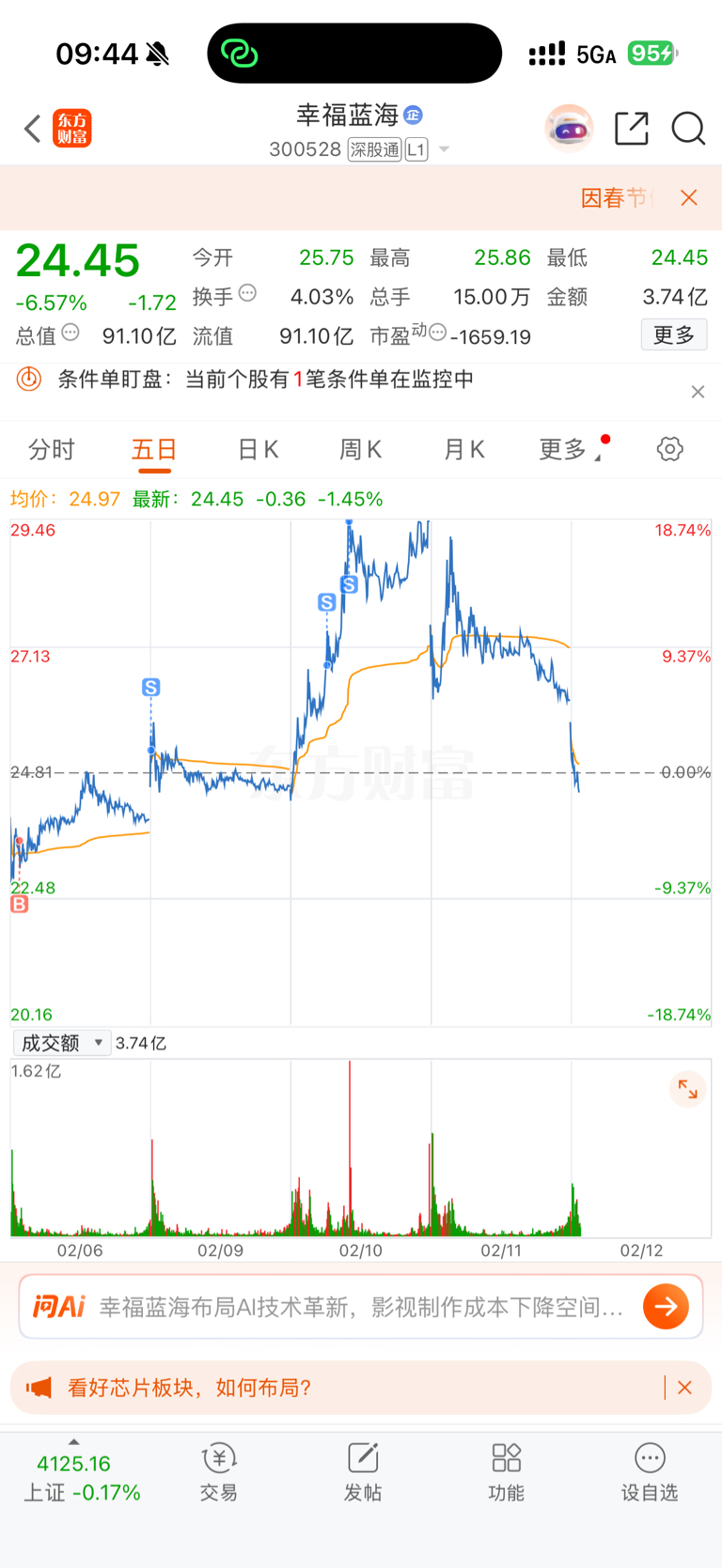 $幸福蓝海(SZ300528)$ 还好涨停的时候跑得快…昨天还在纠结要不要进,幸好工作忙…忙的忘了