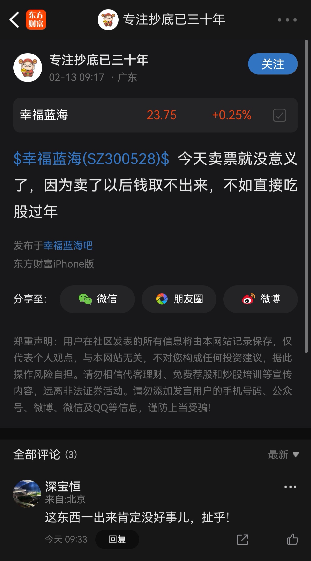 $幸福蓝海(SZ300528)$ 真理!新来此股吧的认真看看!