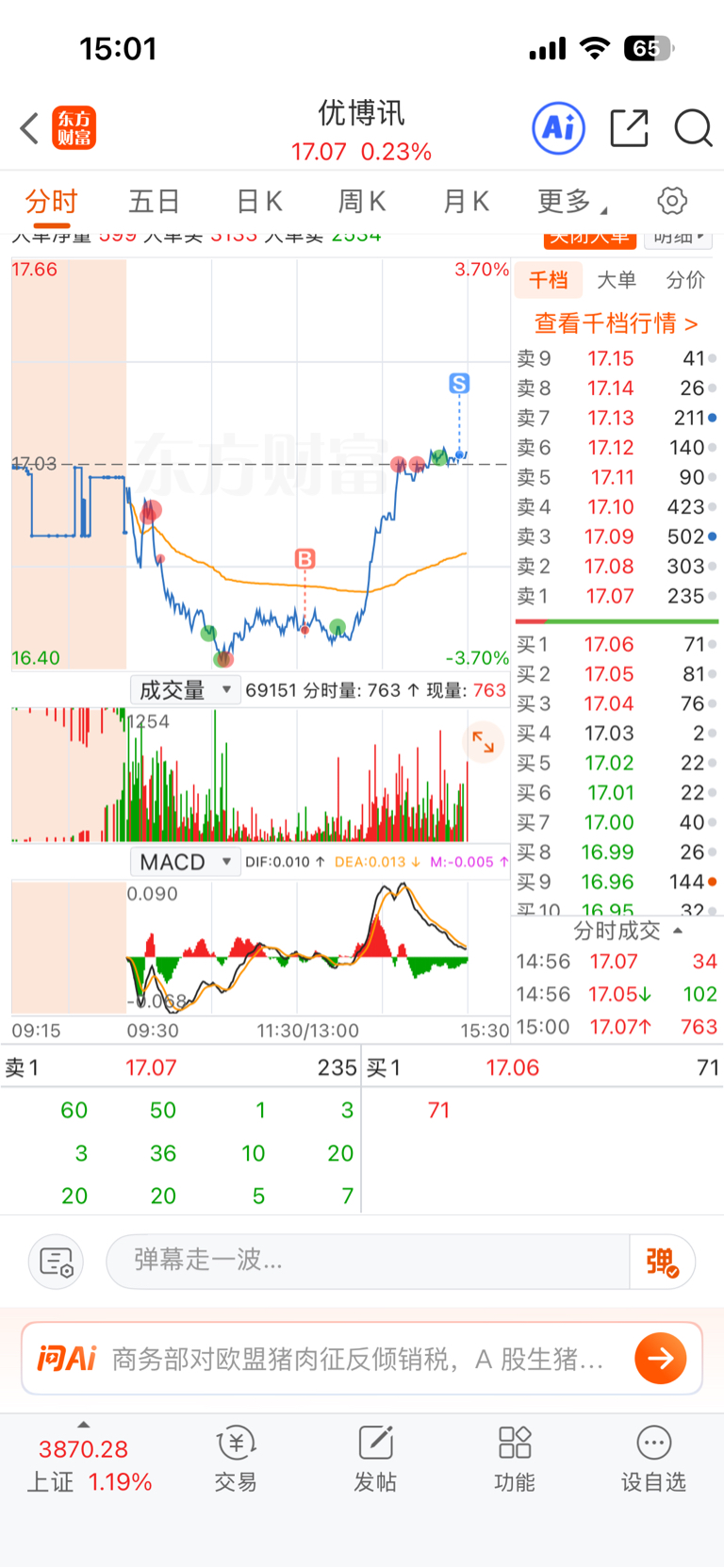 $优博讯(SZ300531)$ 我感觉我卖飞了…明天可能要大涨…