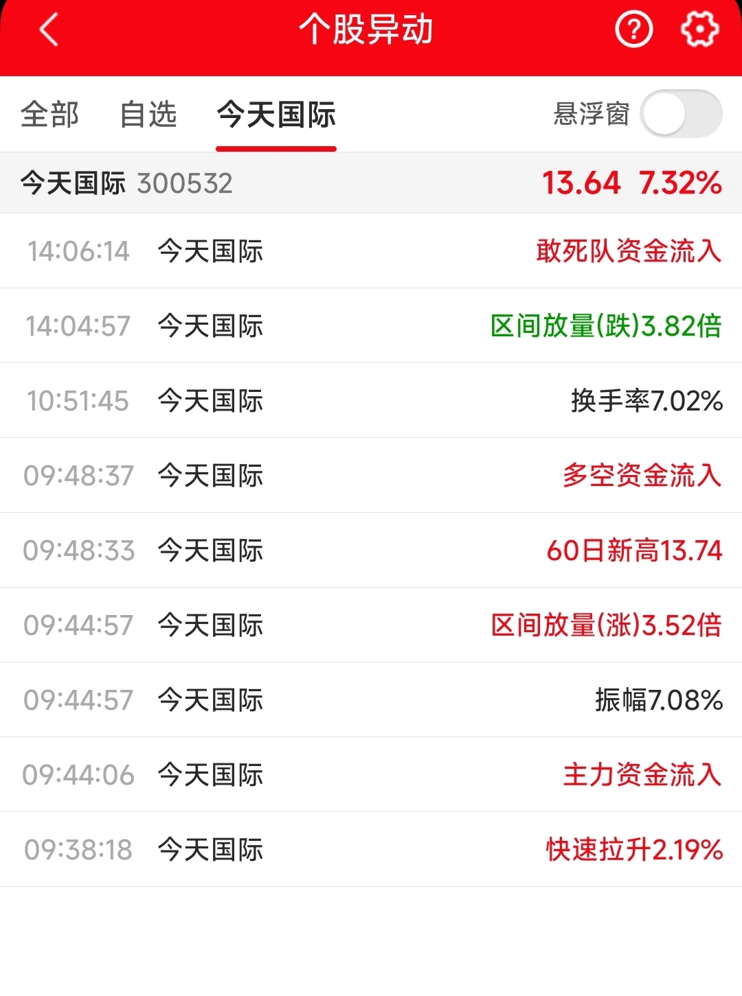 $今天国际(SZ300532)$ 明天能上吗?最死队资金进场。