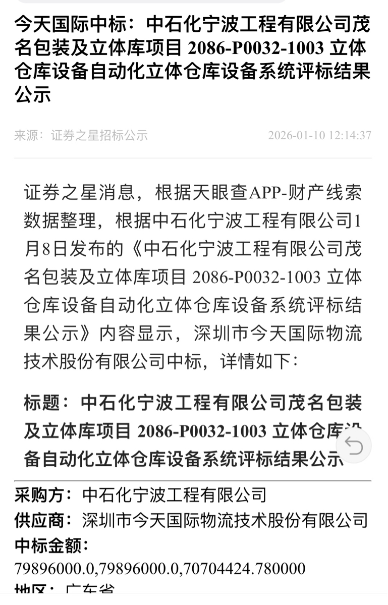 $今天国际(SZ300532)$ 今天国际2026年开门红:中标广东茂名中石化项目,中标金额7989.6万元
