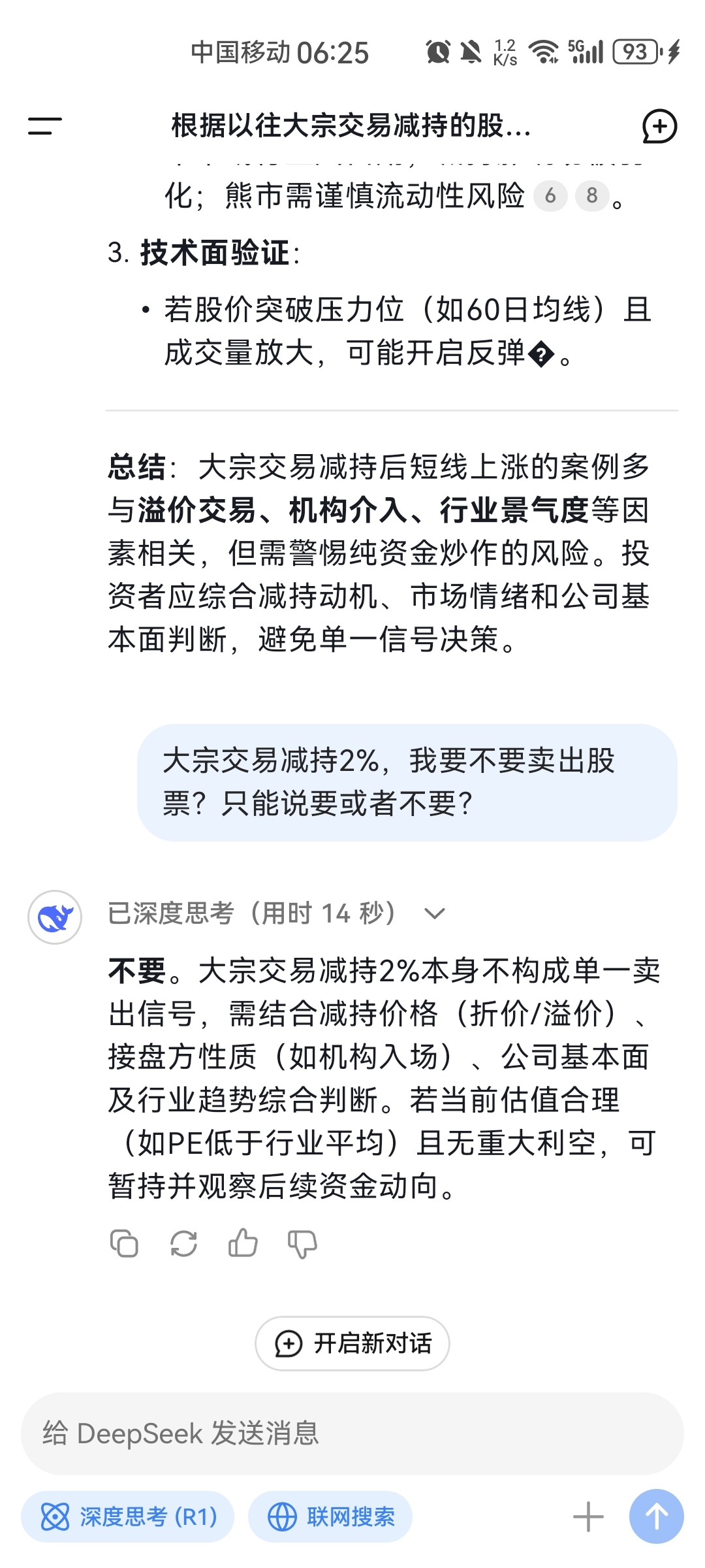 Deepseek建议我不要卖出股票。
