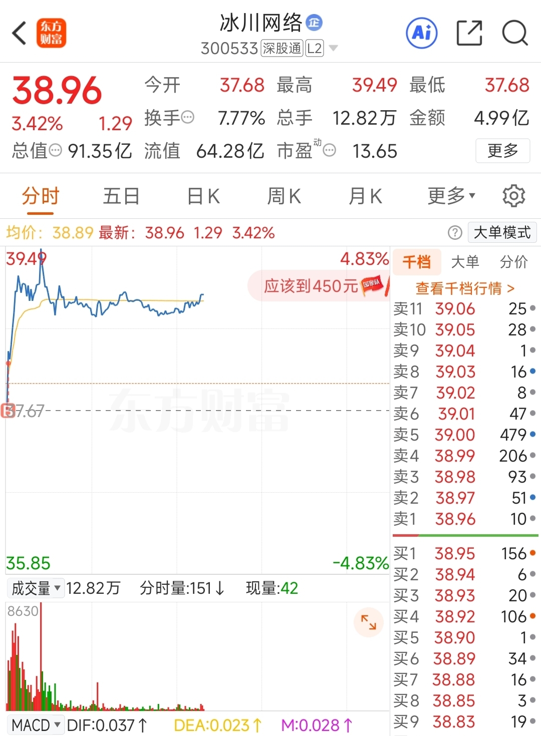 $冰川网络(SZ300533)$ 有半仓在里面,今天加满了。板块有启动迹象,一直看好冰川