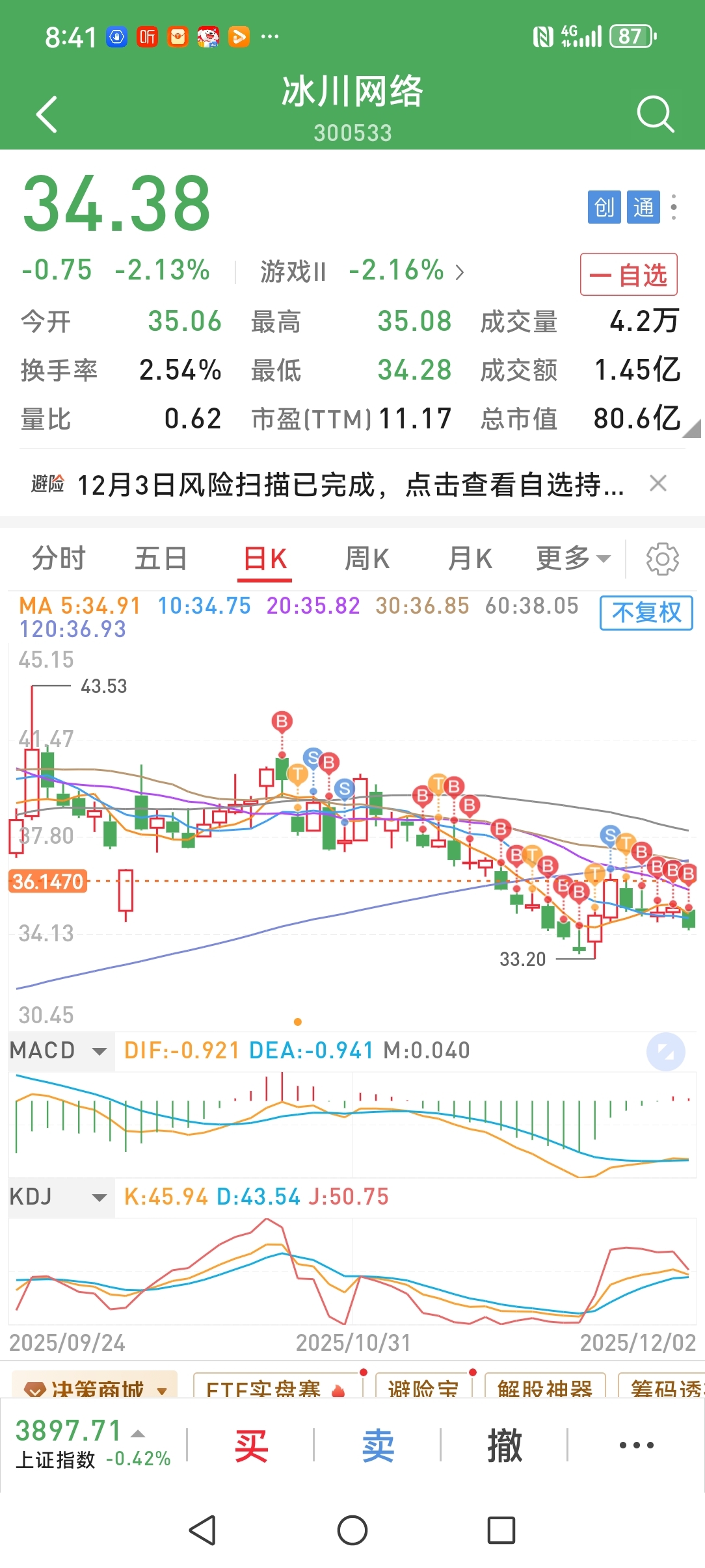 大跌日跌1.5元左右可多买4一6手(但有时你无法确定的)单边跌,次日还有惯性。准备着
