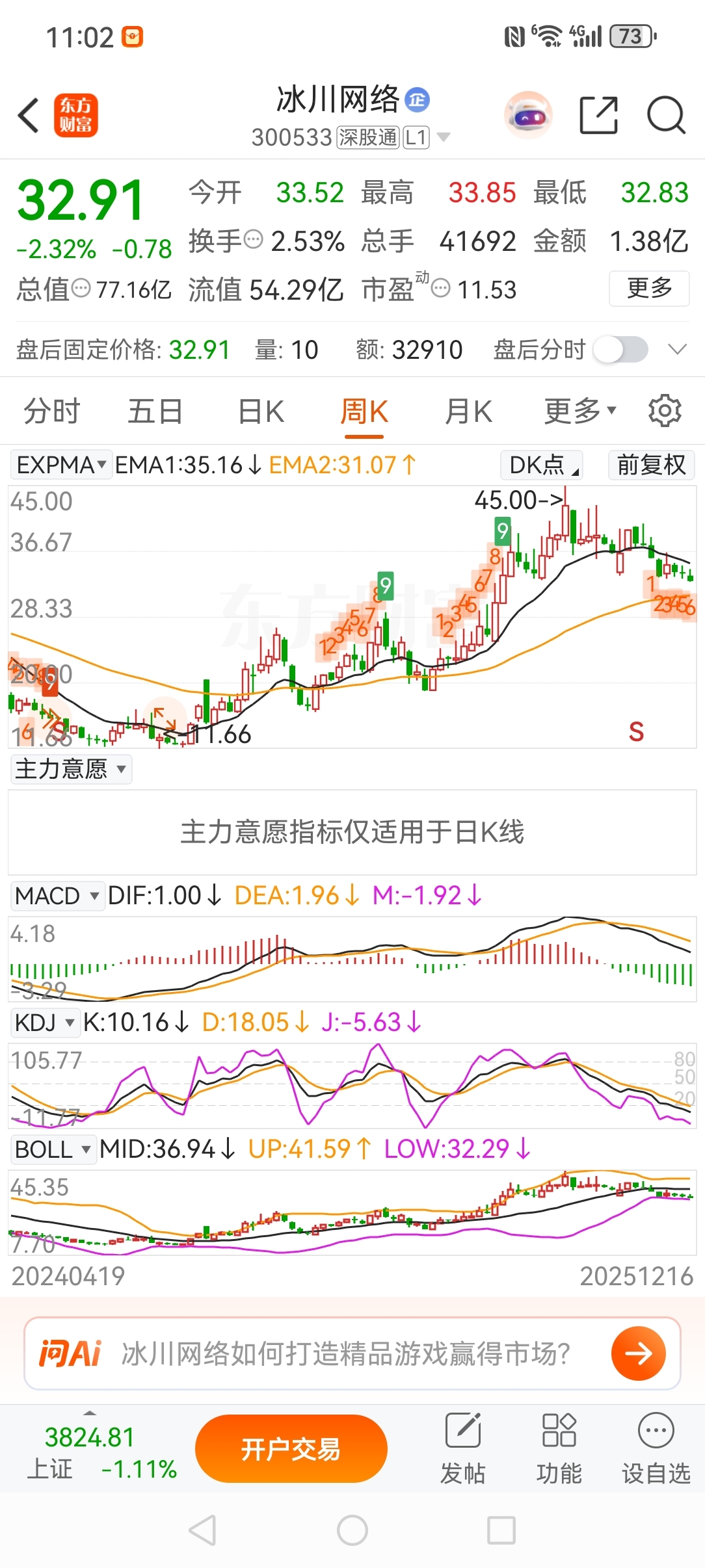 这走势要见黄线吗?那么就边下跌也捡点,又不是末日,今年不行等明年,涨10元是可能