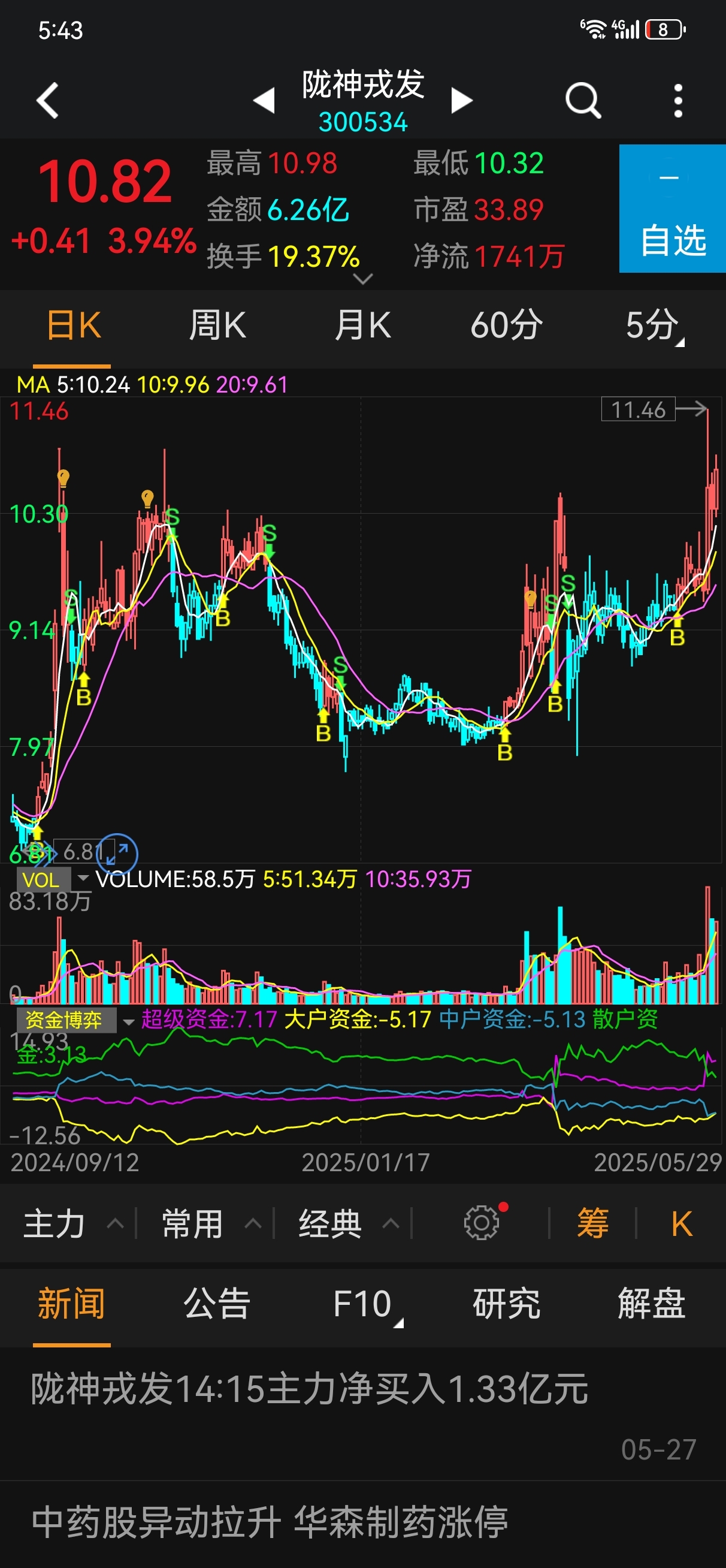 放量突破10.3.两天回踩平台,主升浪开启。