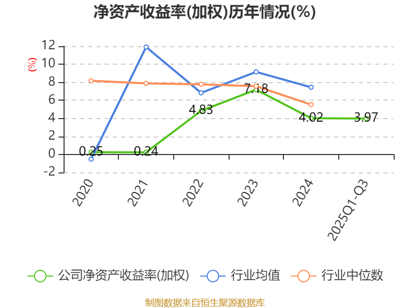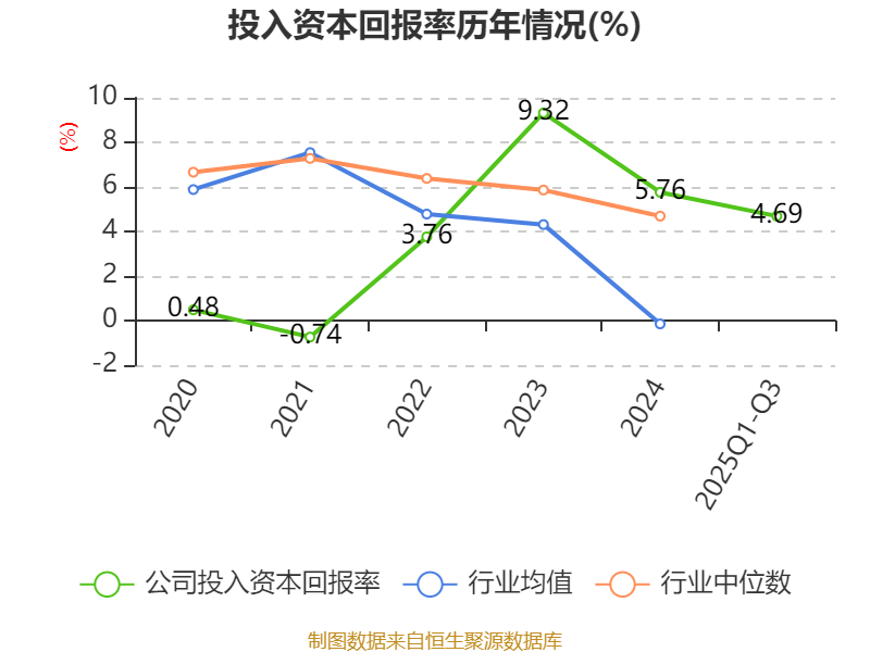 盈利能力方面, 2025年前三季度公司加权平均净资产收益率为3.97%,同比上升0.12个百分点。公司2025年前三季度投入资本回报率为4.69%,较上年同期下降0.66个百分点。