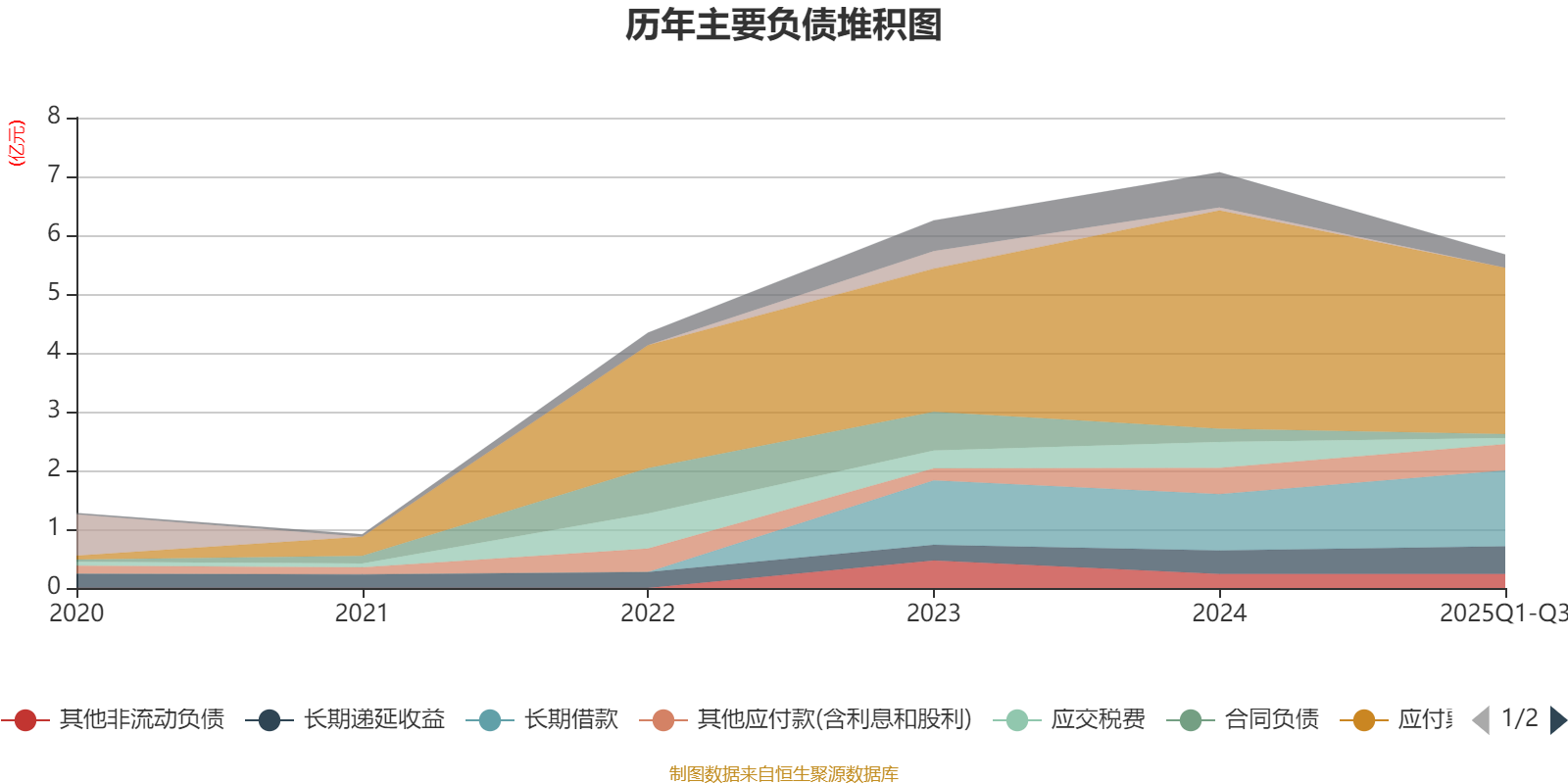 负债重大变化方面,截至2025年三季度末,公司应付票据及应付账款较上年末减少23.85%,占公司总资产比重下降4.31个百分点;长期借款较上年末增加34.57%,占公司总资产比重上升3.12个百分点;应交税费较上年末减少76.18%,占公司总资产比重下降2.25个百分点;一年内到期的非流动负债较上年末减少78.51%,占公司总资产比重下降1.82个百分点。