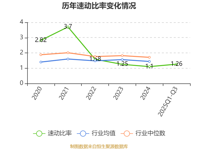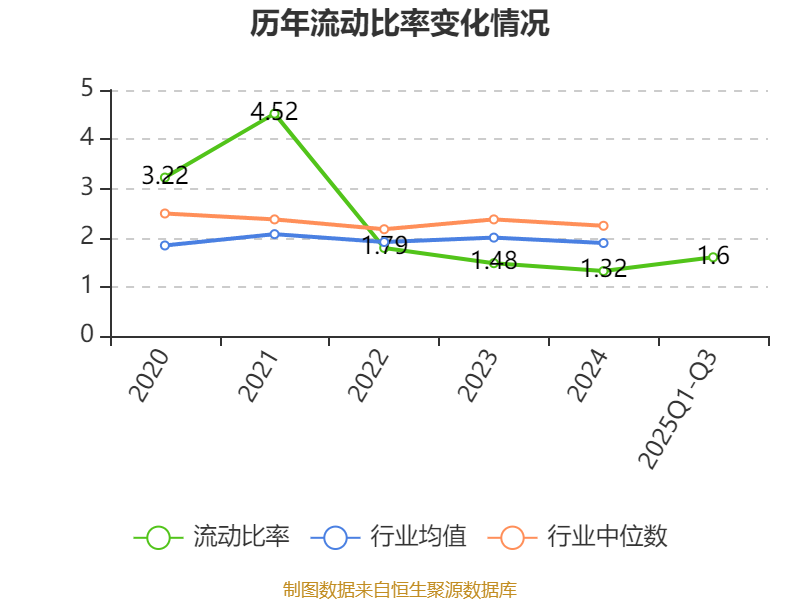 2025年前三季度,公司流动比率为1.6,速动比率为1.26。