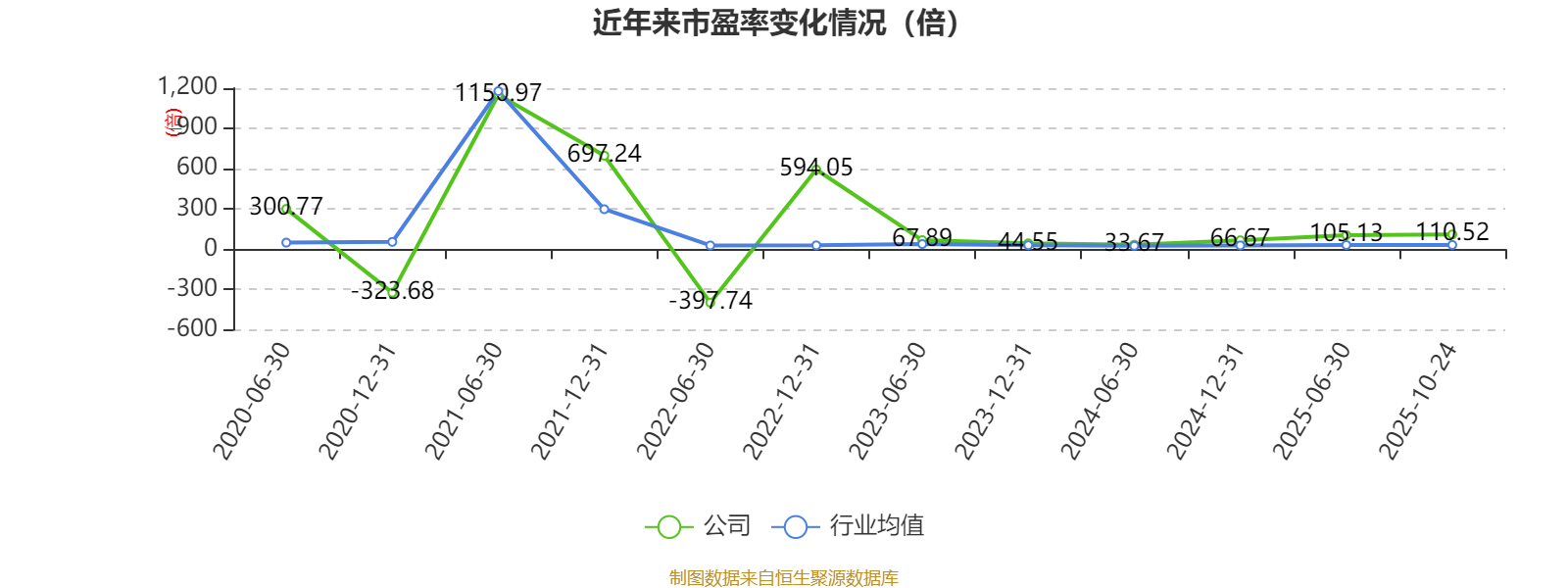 以10月24日收盘价计算,陇神戎发目前市盈率(TTM)约为110.52倍,市净率(LF)约4.46倍,市销率(TTM)约3.36倍。