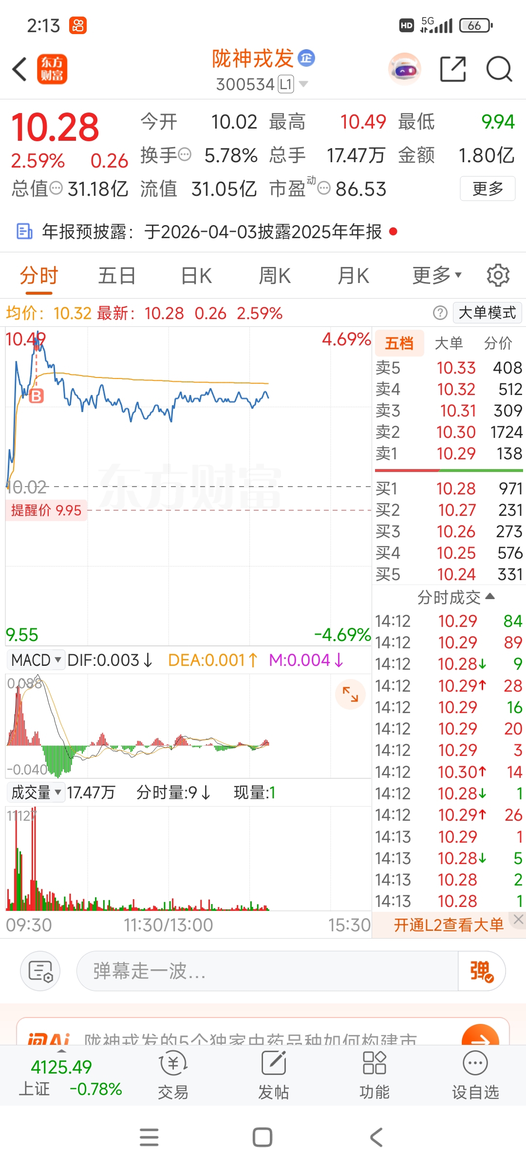 $陇神戎发(SZ300534)$ 实在不好意思,是我打下来的