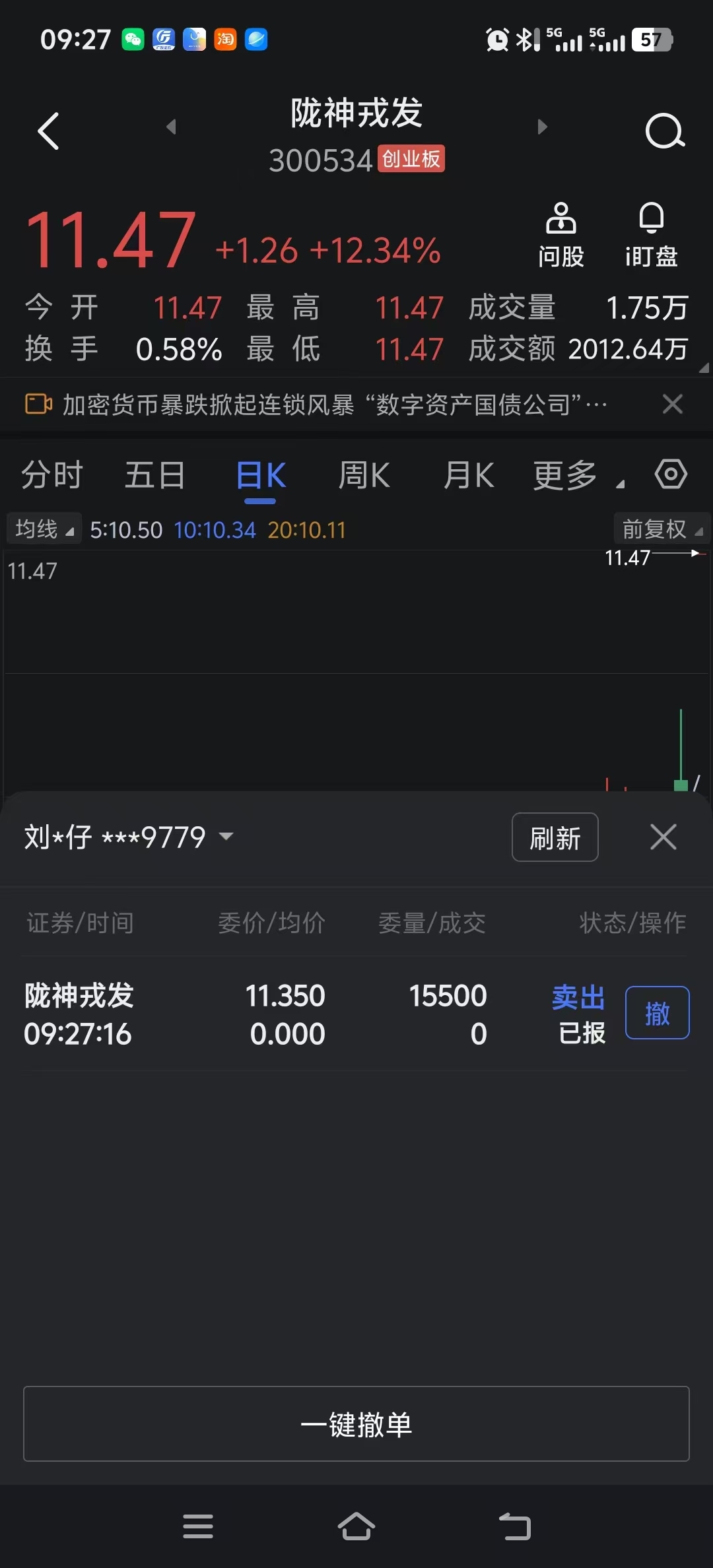 $陇神戎发(SZ300534)$ 你们这些人,这么高也敢冲,搞得开盘溢价太高我的挂单变成废单卖不出去!!!