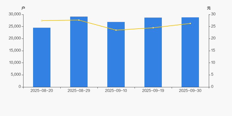 2025年8月20日至今,公司股东户数显著增长,区间涨幅为17.47%。2025年8月20日至2025年9月30日区间股价下降4.33%。
