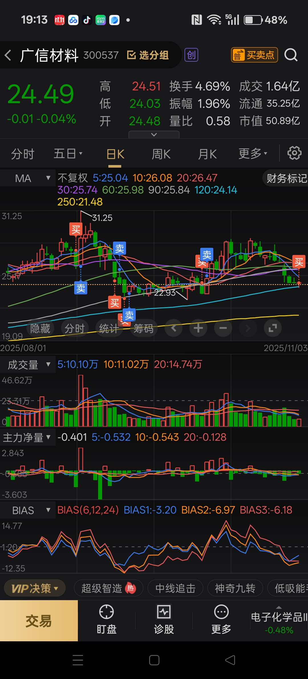 $广信材料(SZ300537)$ 我又来了,每次来都能吃几个点走