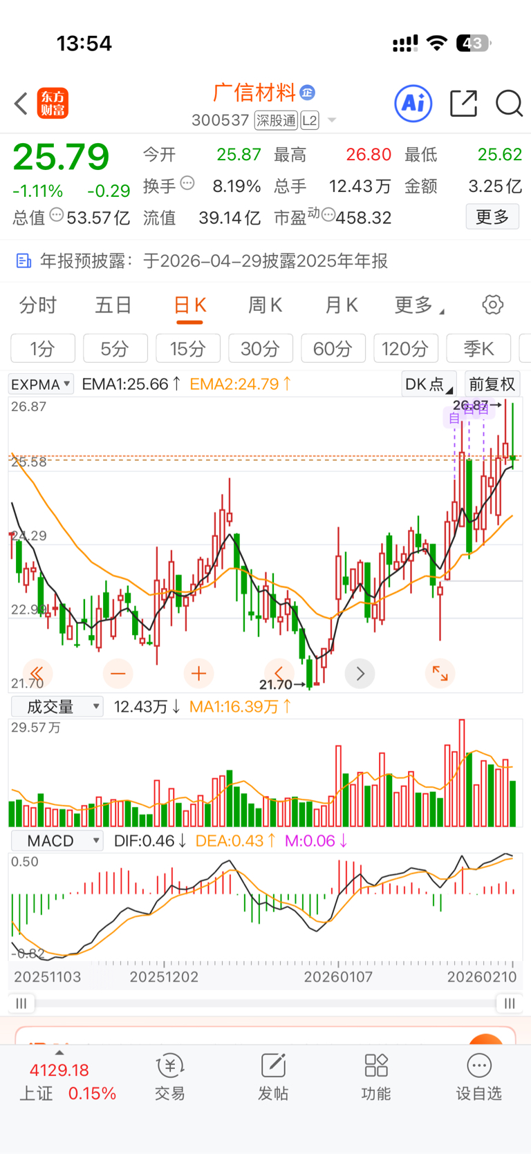 $广信材料(SZ300537)$ 去看那些翻倍股,哪个会走这种恶心的线,日线都能走成织布机,织布机中都没有这么垃圾的