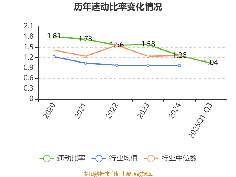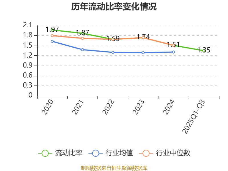 2025年前三季度,公司流动比率为1.35,速动比率为1.04。