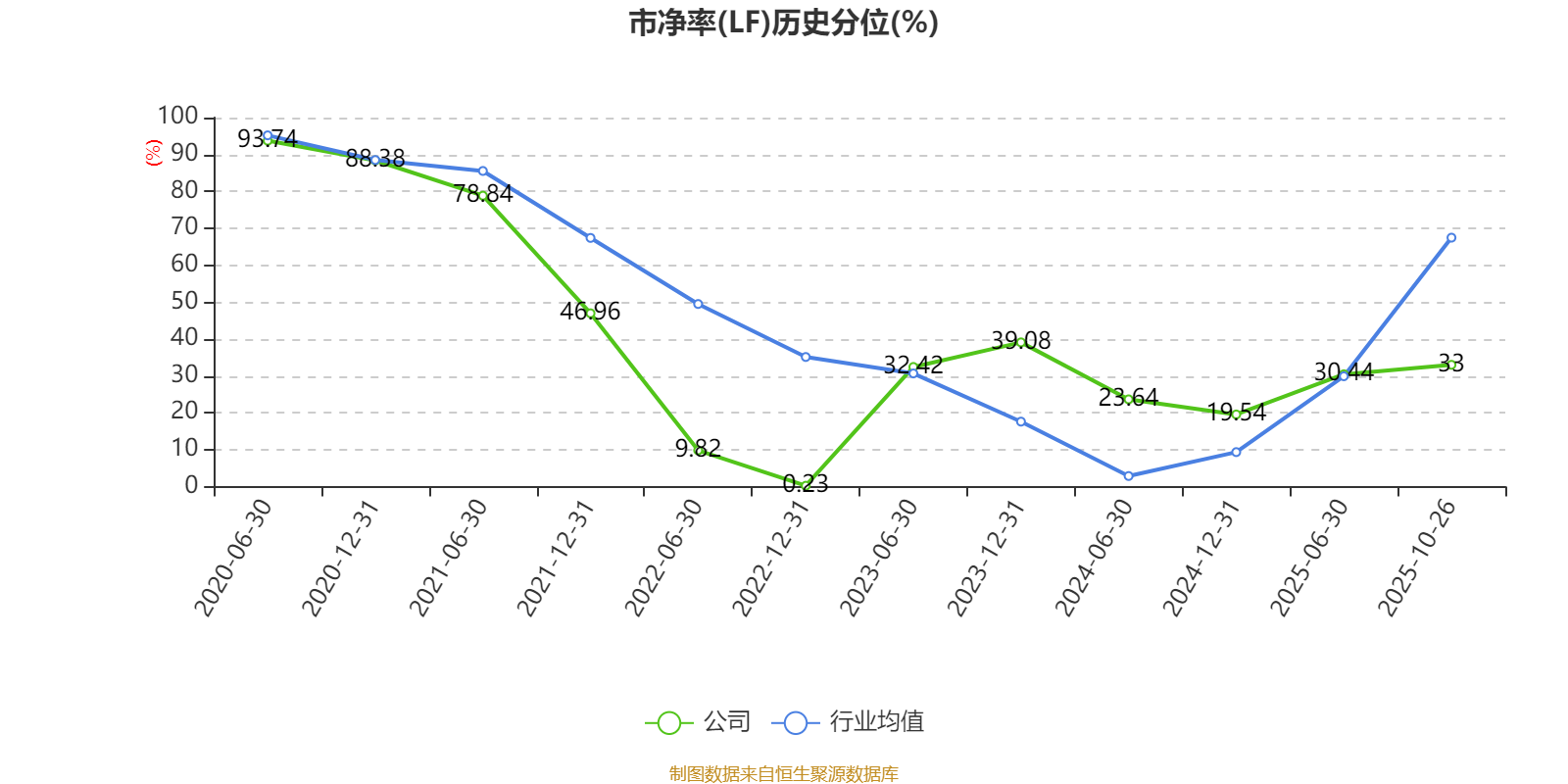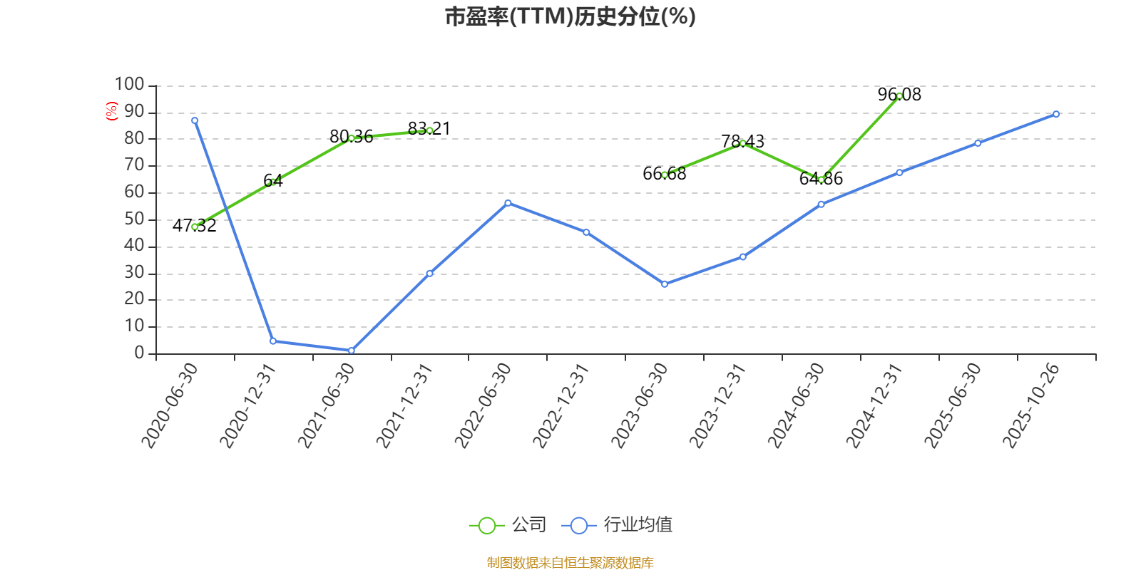 市盈率、市净率为负时,不显示当期分位数,会导致折线图中断。