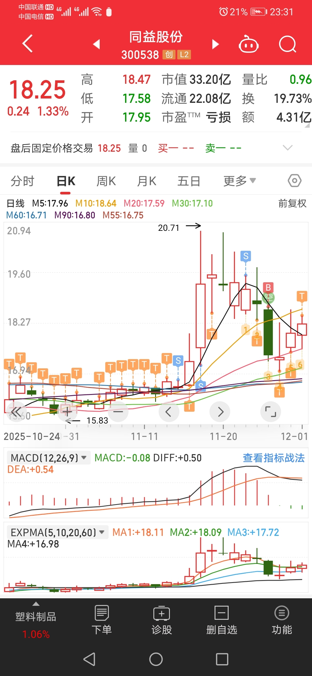 每天就是做做t. 格局即可,24年2.5号至今,小盘科技股平均涨幅是120%,这股位置很低的,同益是和科翔一起买的,七月之前走势就是一样的。