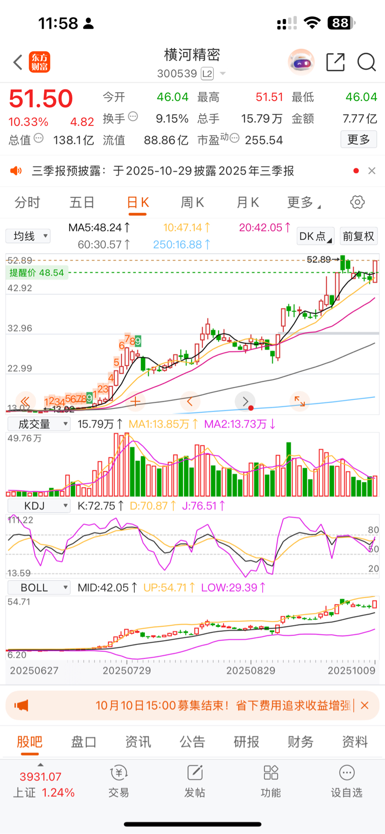 $横河精密(SZ300539)$ 哎呦喂一直不敢上车天天看着他涨
