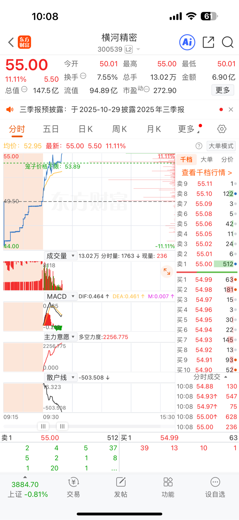 $横河精密(SZ300539)$ 花有重开日 获利可以止盈了