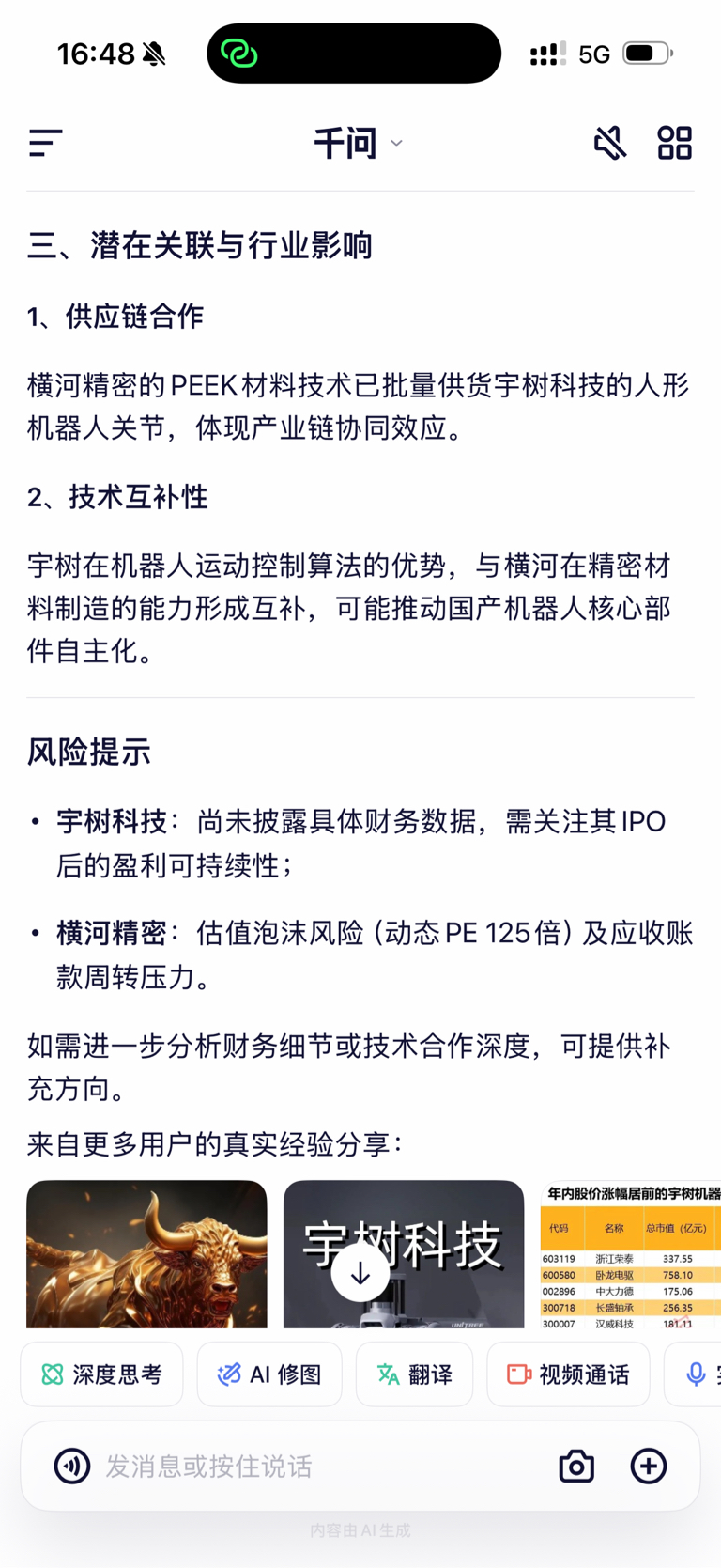 $横河精密(SZ300539)$ 宇树科技供货,真的假的啊?千问上的靠谱吗