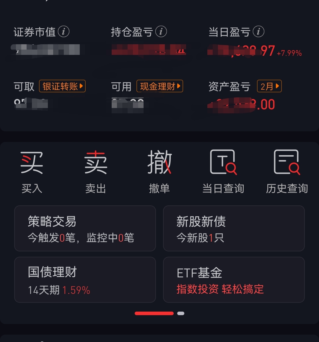 今天一个账户正T多赚2个点,一个账户负T1个点;大家发财