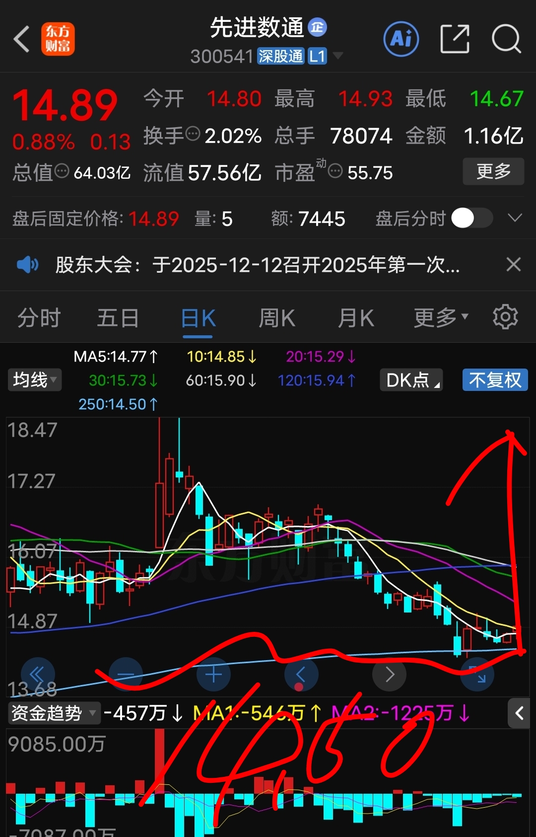 $先进数通(SZ300541)$ 年线争夺战保卫战突破海阔天空