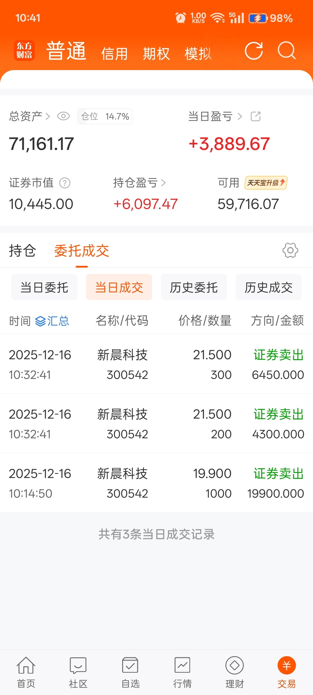 $新晨科技(SZ300542)$ 抛早了,也不能后悔,有赚就行