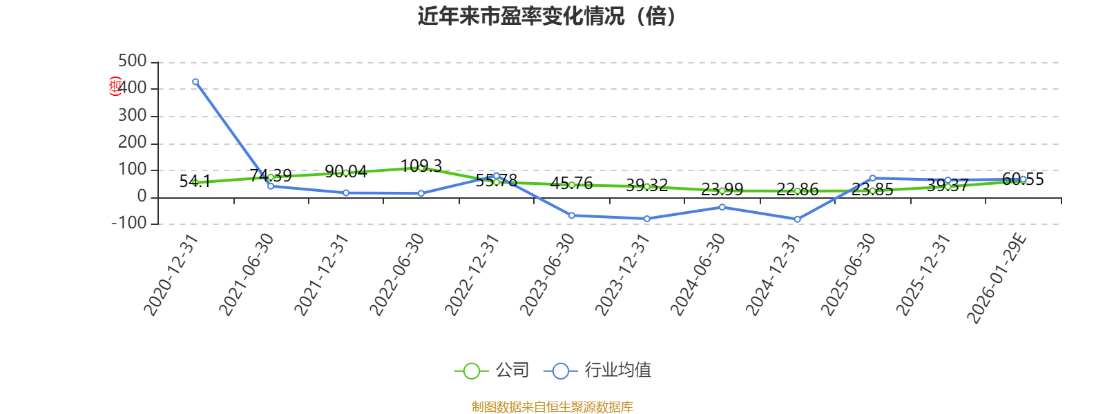 以本次披露业绩预告均值计算,公司近年市盈率(TTM)图如下所示: