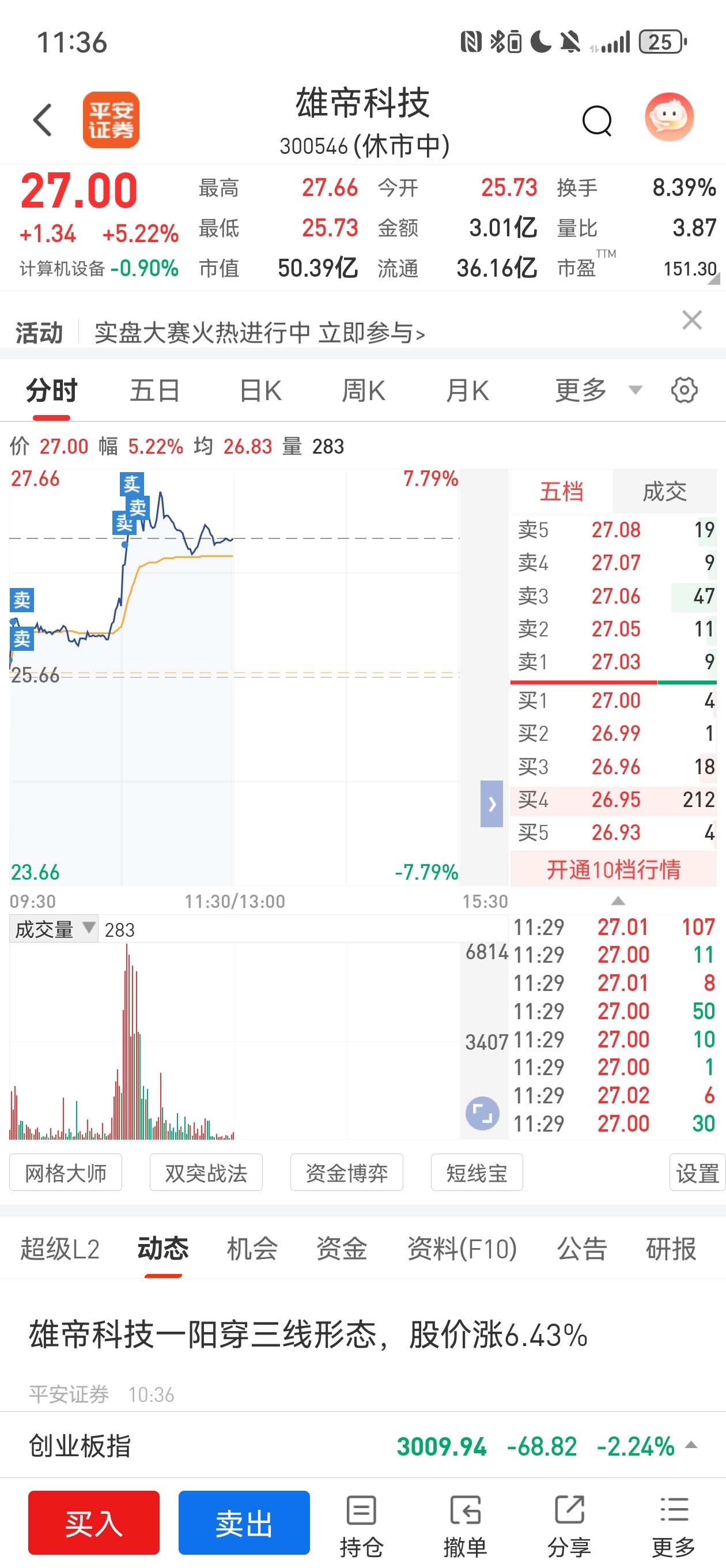 $雄帝科技(SZ300546)$ 昨天加的早上开盘几分钟之内就卖出去了,卖的好亏
