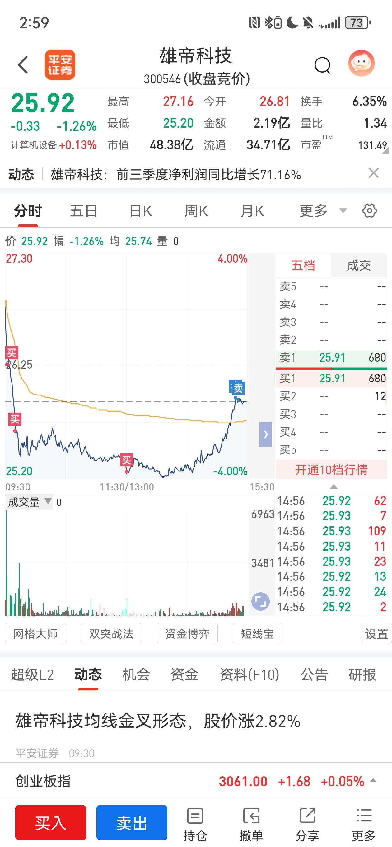 $雄帝科技(SZ300546)$ 早上挂的距离高点高了1毛多结果没成交直接下了,下了就只能加仓了,微盘继续T出加仓的