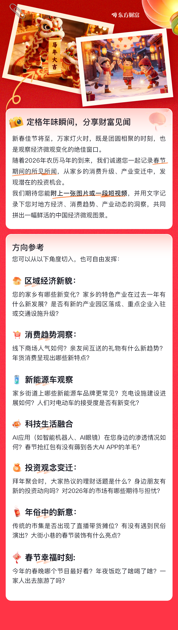 1、发图片:在【本文评论区】或【带话题#2026春节见闻#】发布一张展示你的春节见闻的照片,并配上相关思考文字;