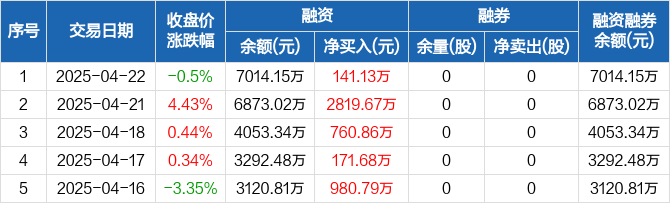 博创科技:融资净买入141.13万元,融资余额7014.15万元(04-22)