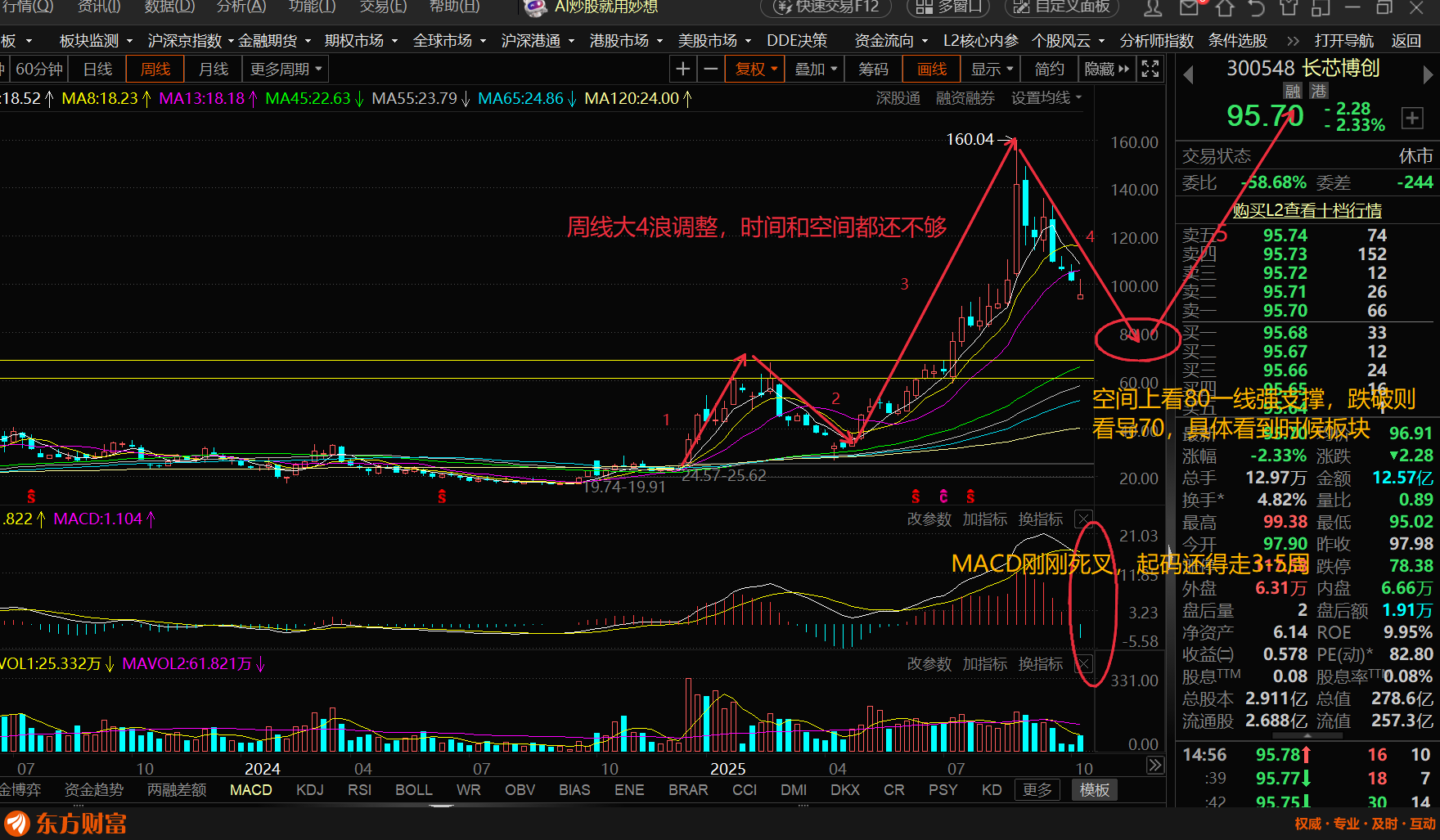 周线级别调整,时间和空间都没到,继续耐心等待吧!纯技术解图,不做投资建议,盈亏自
