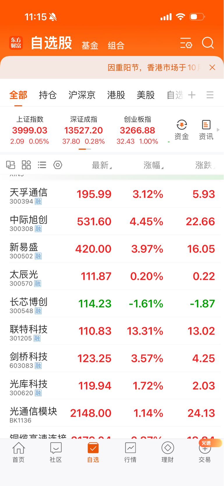 $长芯博创(SZ300548)$ 唯一的绿色!