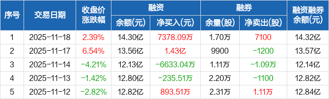 长芯博创:融资净买入7378.09万元,融资余额14.3亿元(11-18)